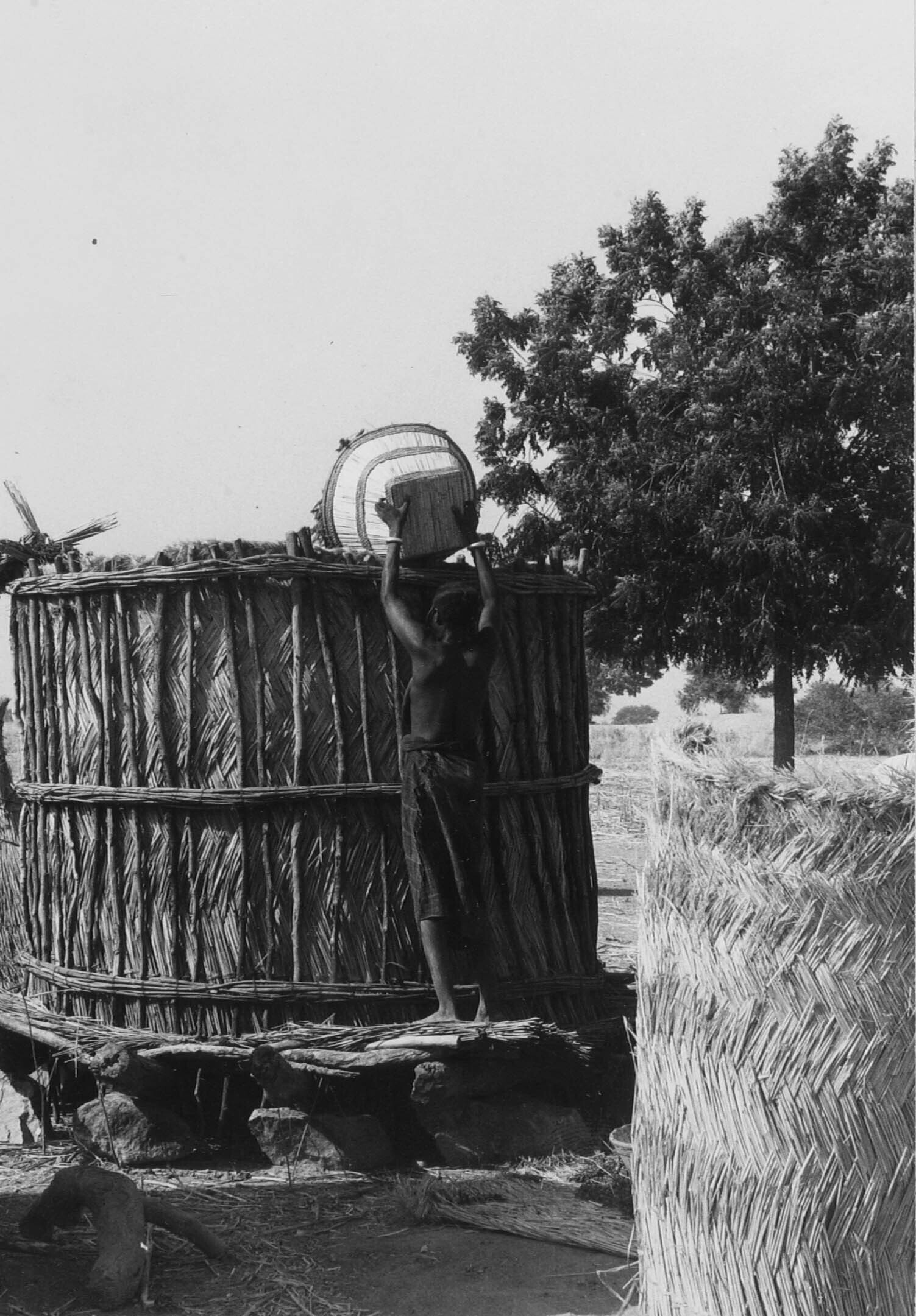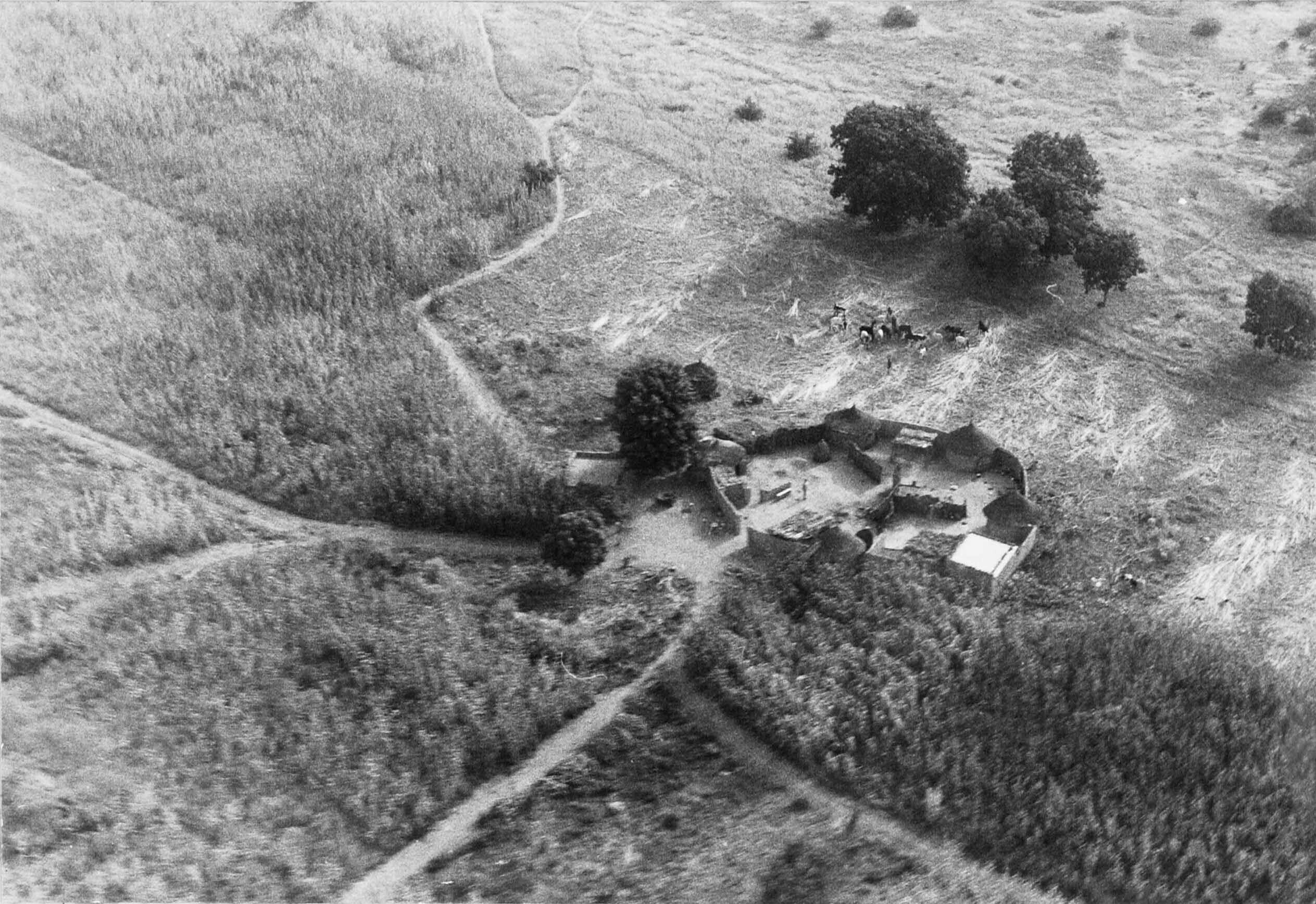 Luchtopname van een Mossi woonerf met daaromheen de ...