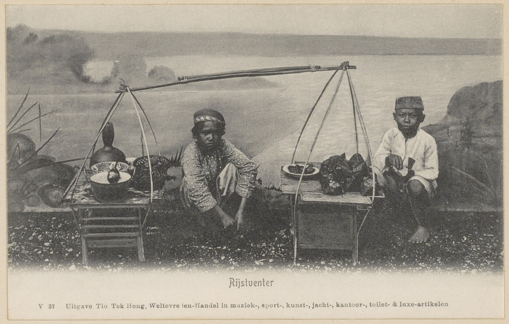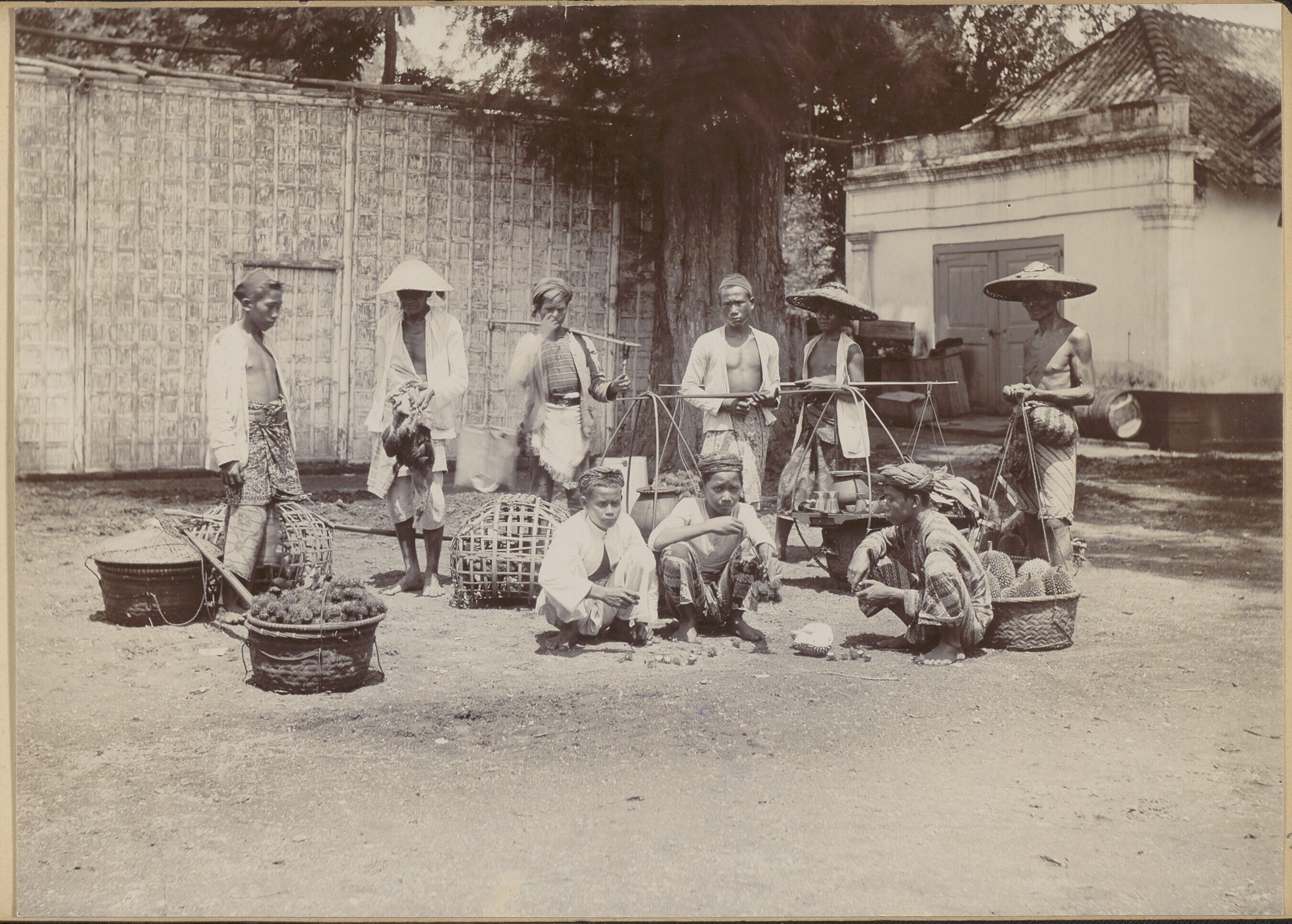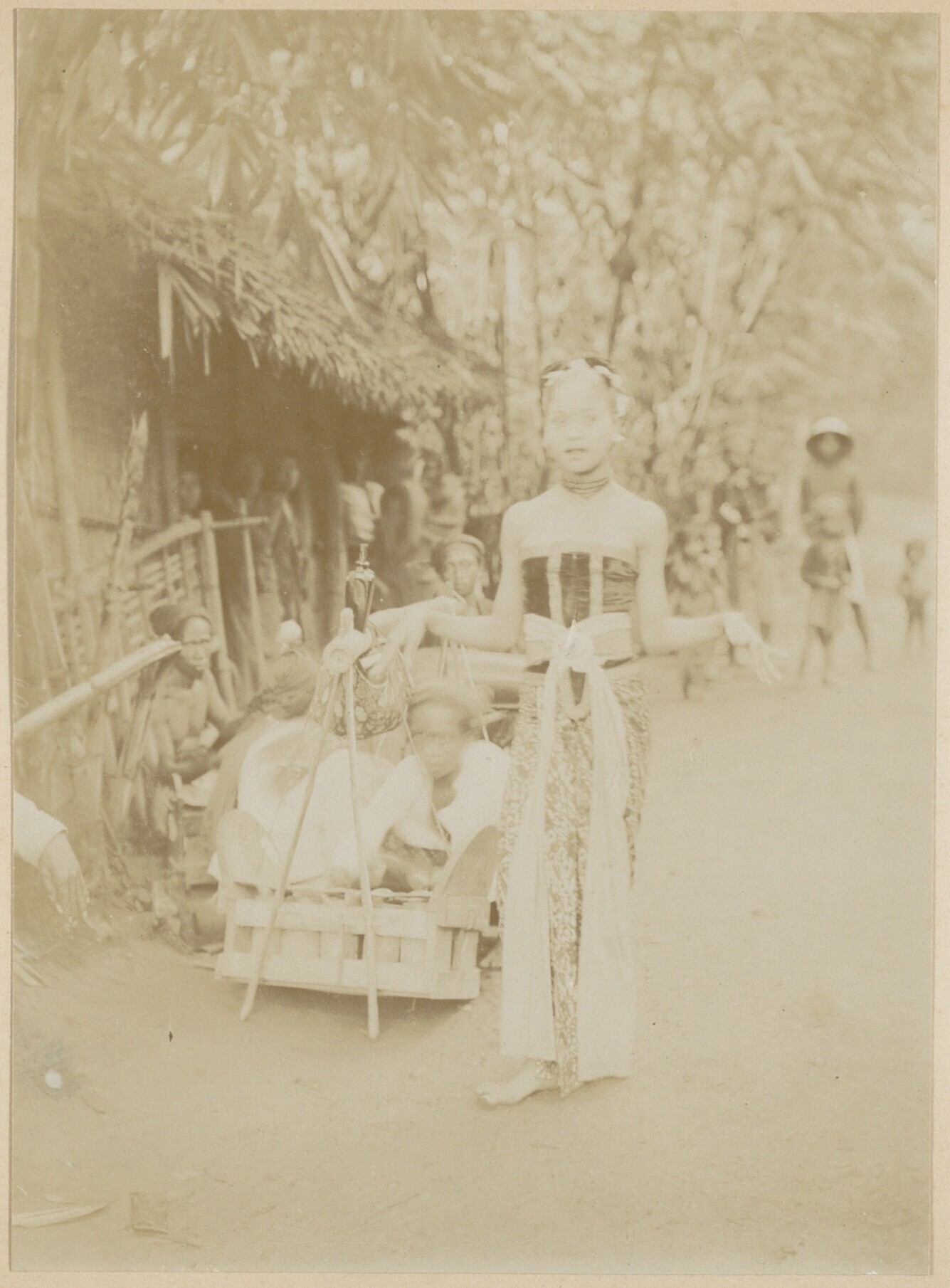 Straatbeeld op Java met een tram rechts op de voorgrond