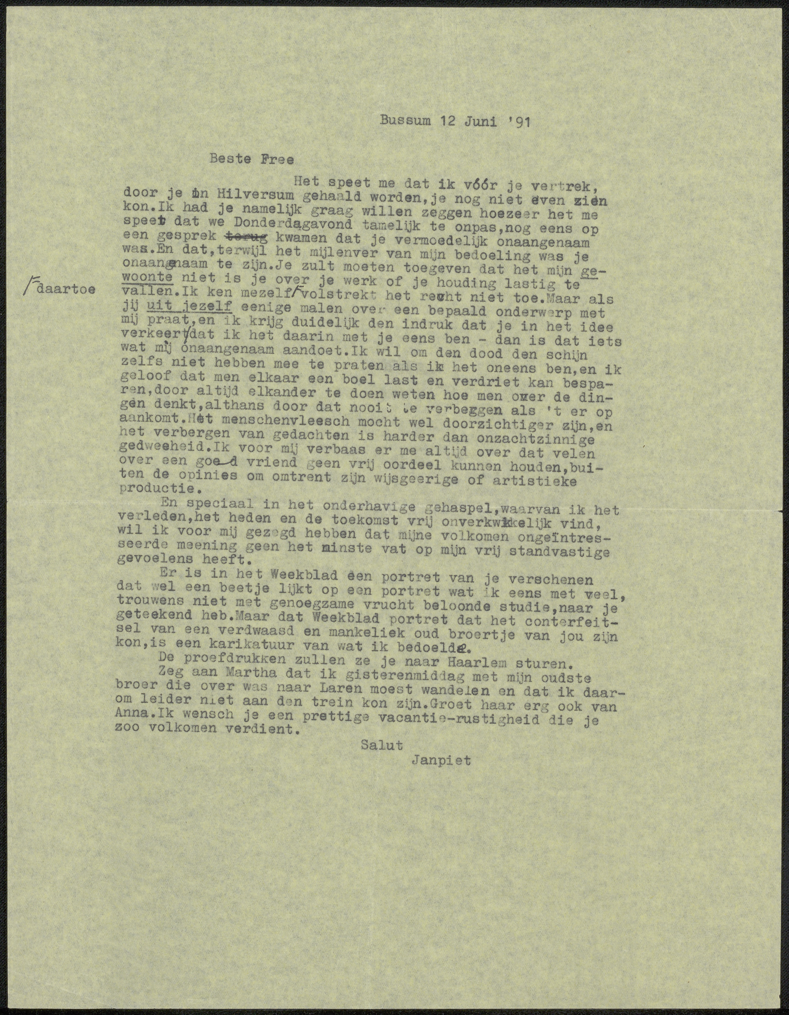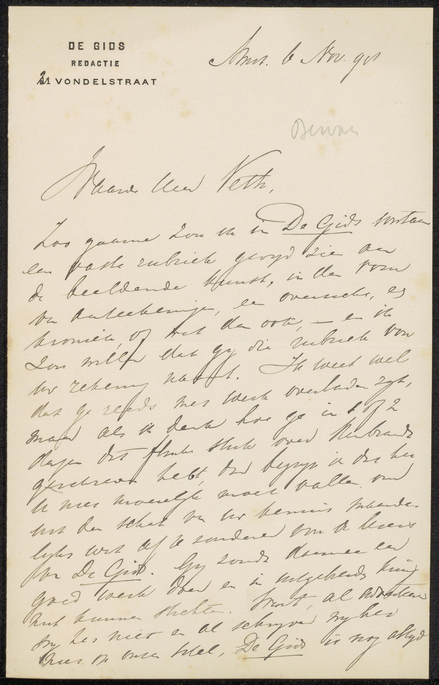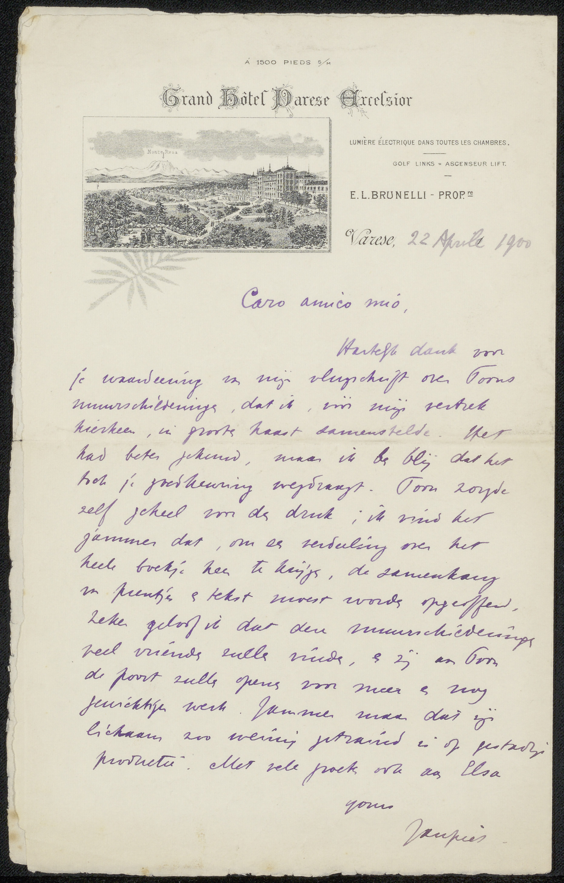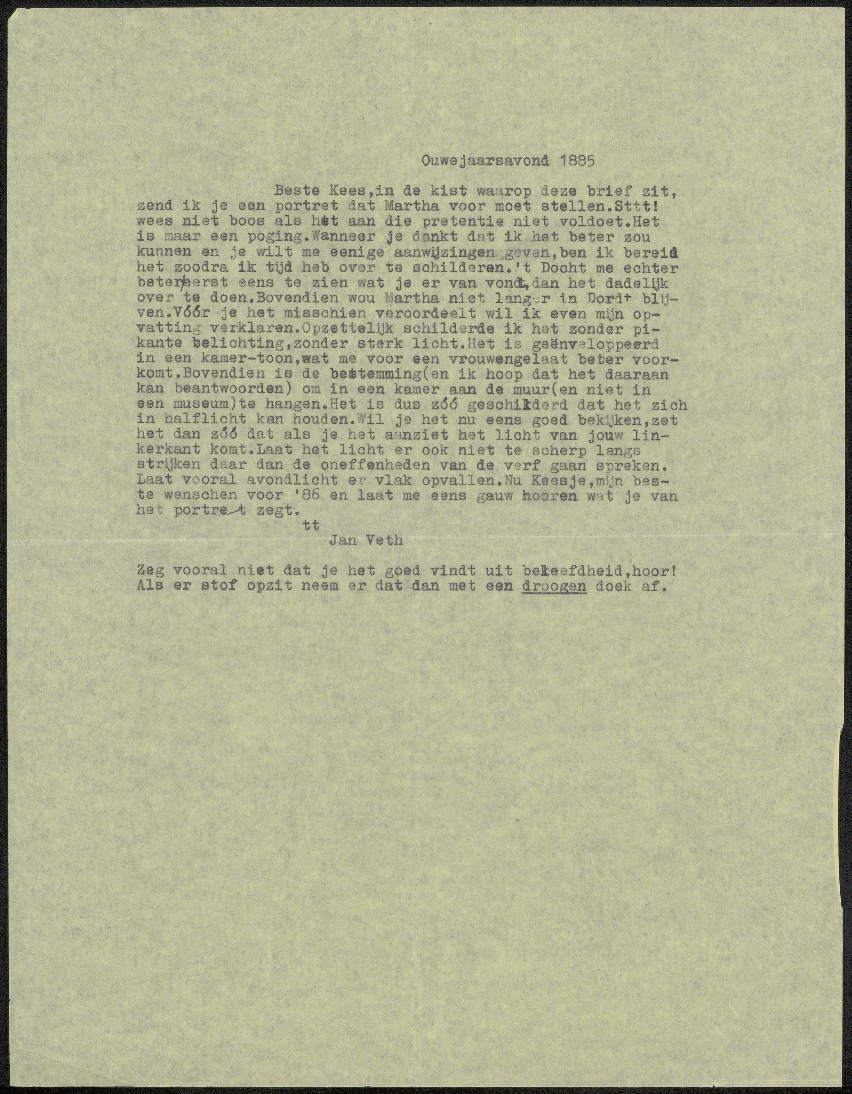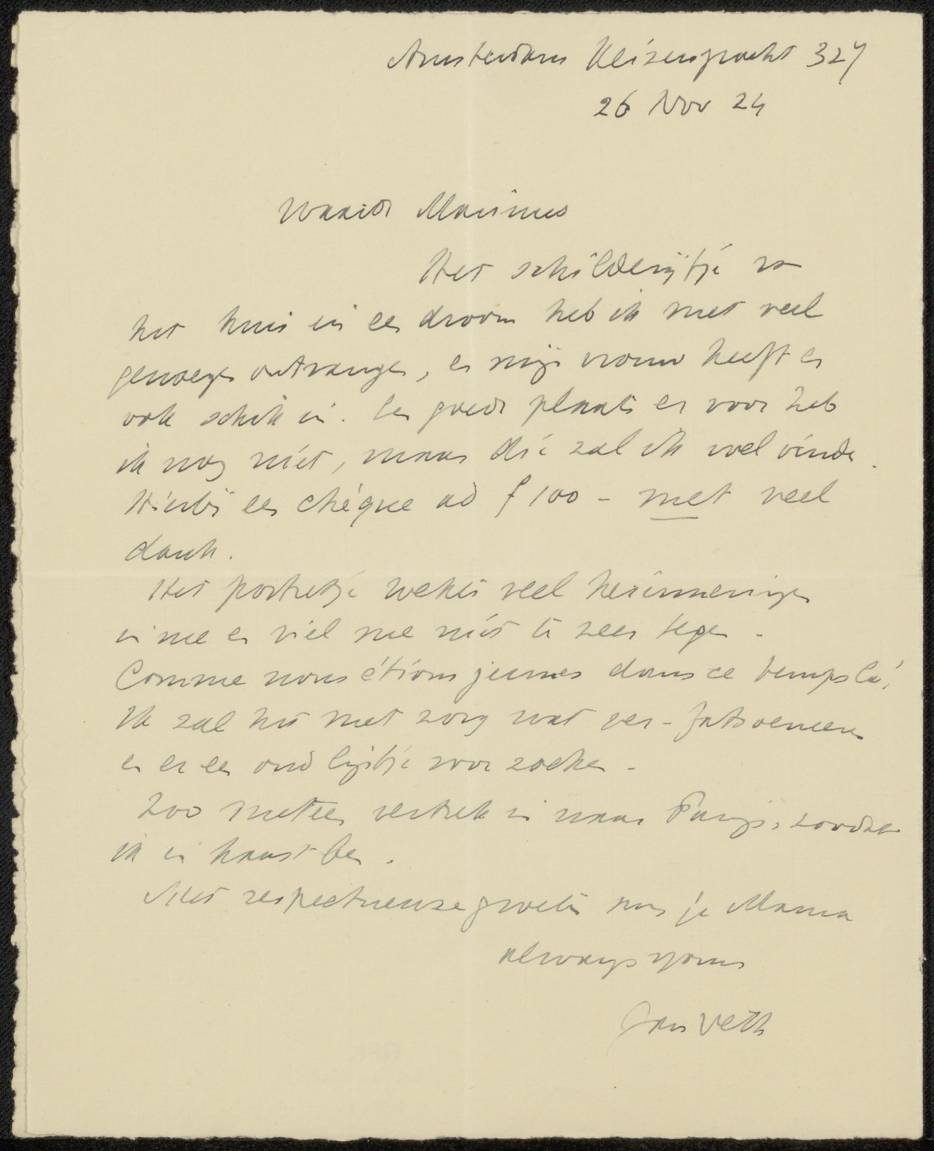 Brief aan Jan Veth en Anna Dorothea Dirks