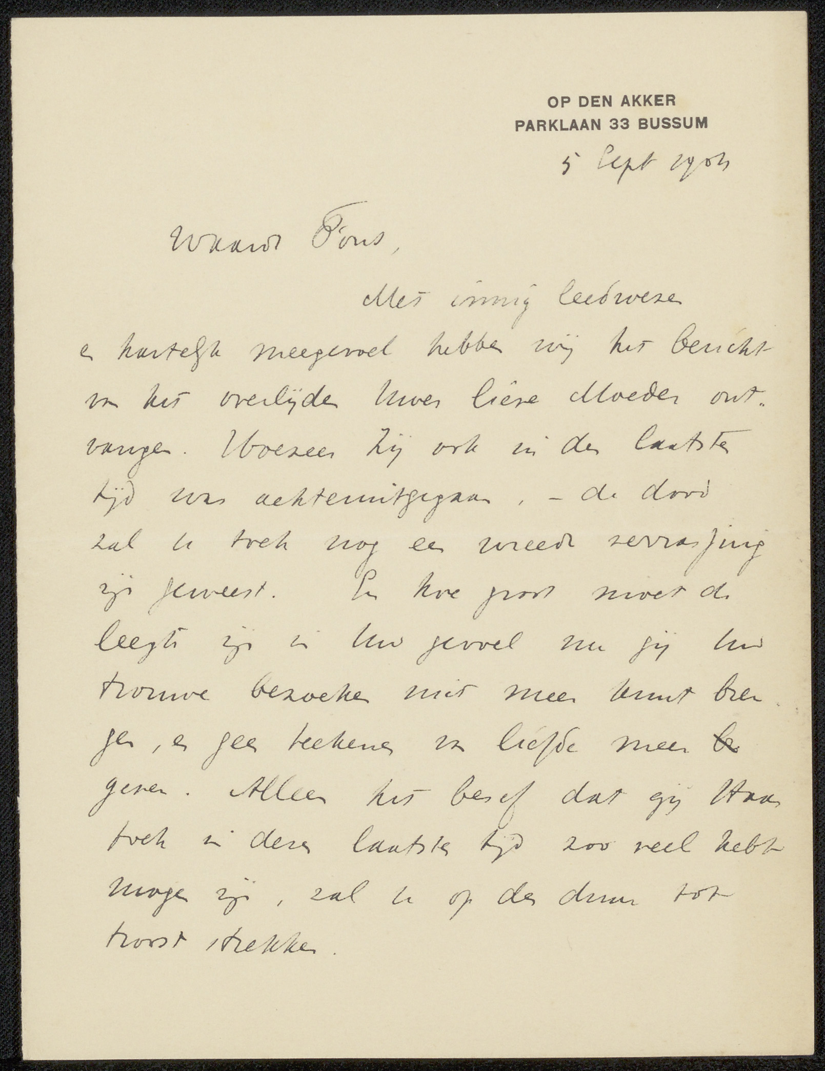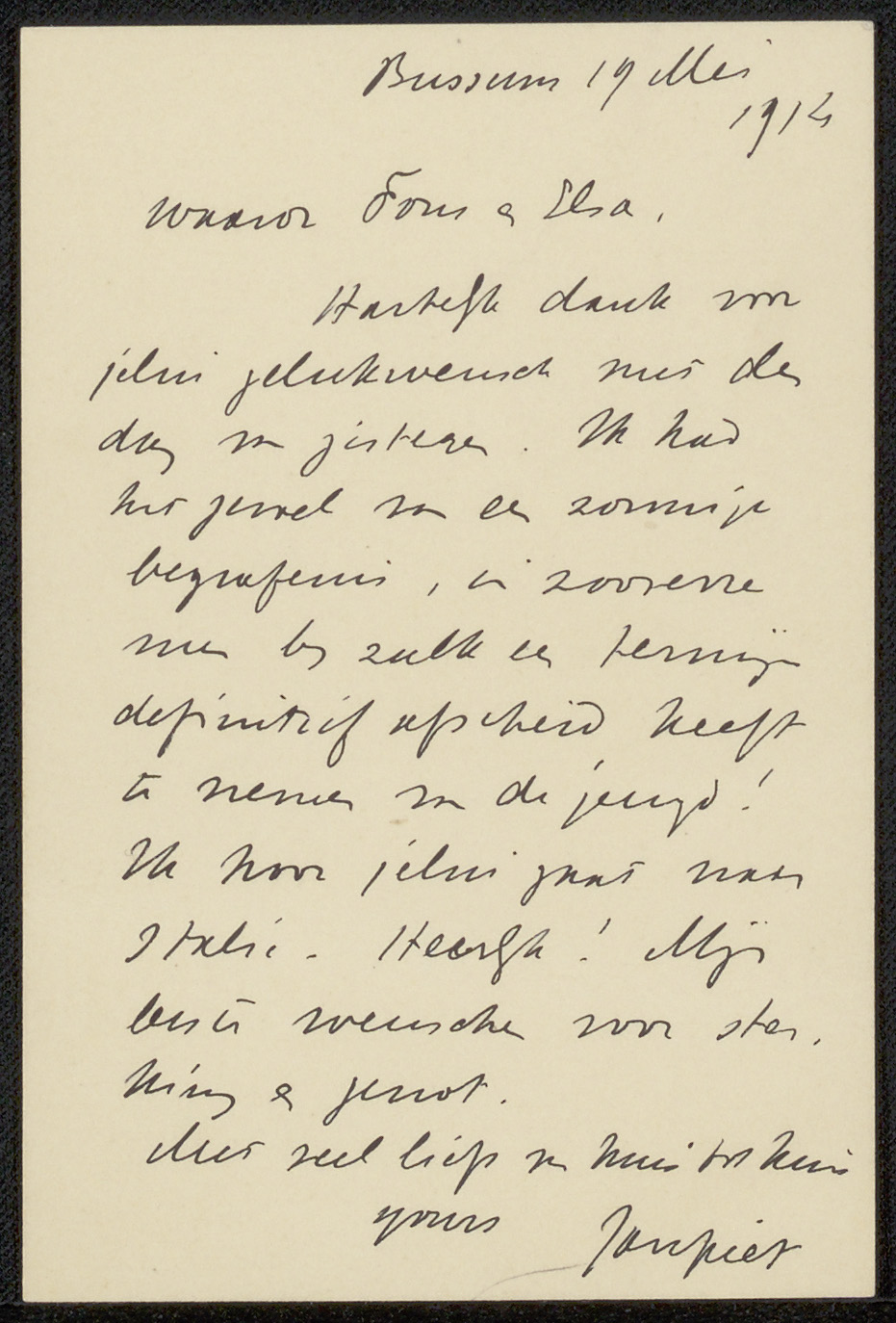 Brief aan Alphons Diepenbrock en jonkvrouw Wilhelmin...