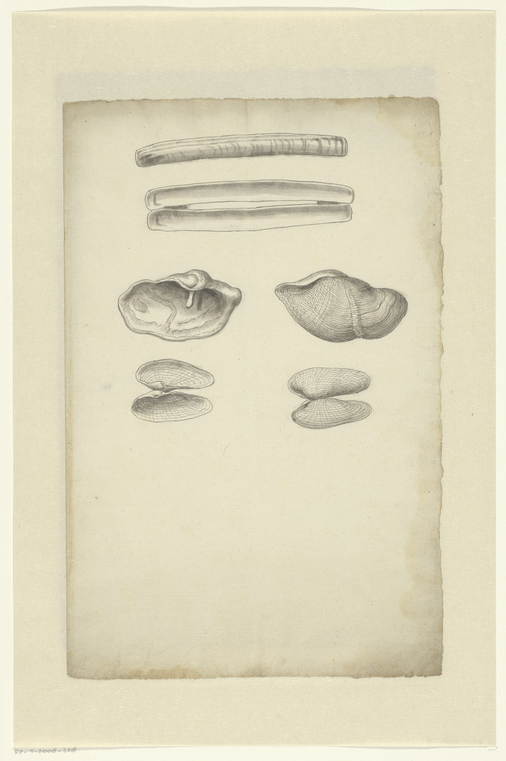Study sheet with razor shells (Ensis arcuatus), ston...
