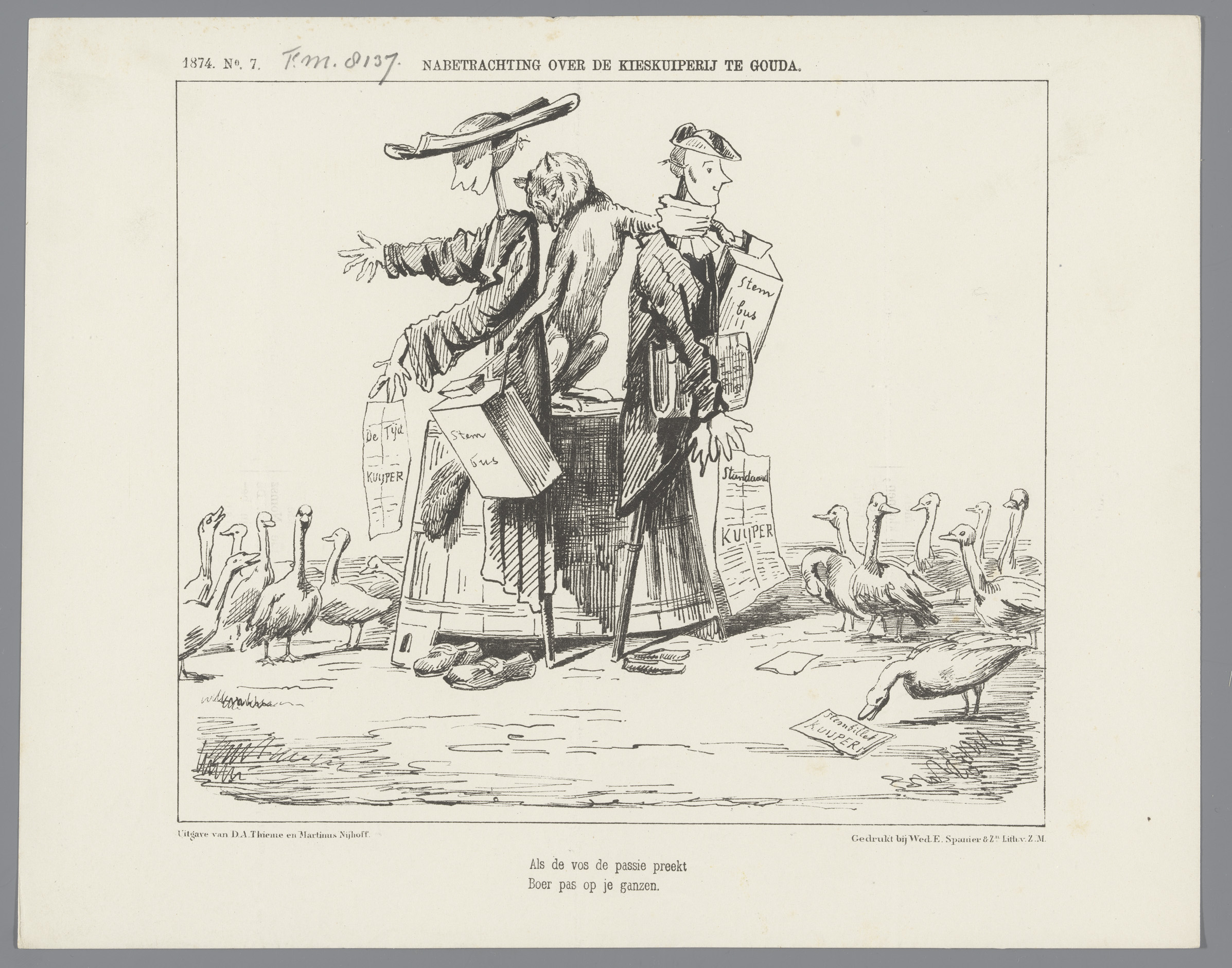 Spotprent op de verkiezing van Abraham Kuyper in Gou...