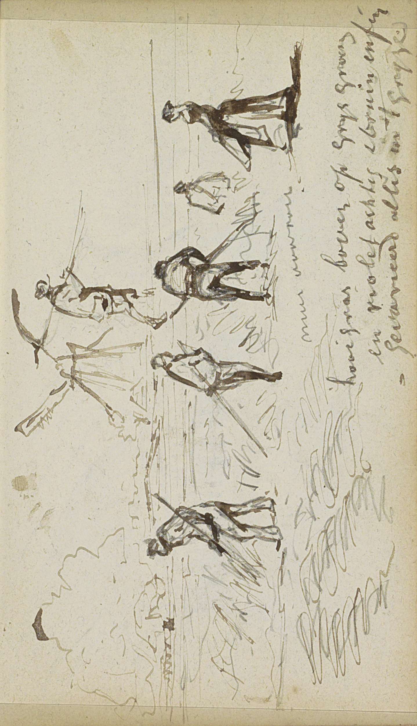 Weiland met mannen die hooi maaien