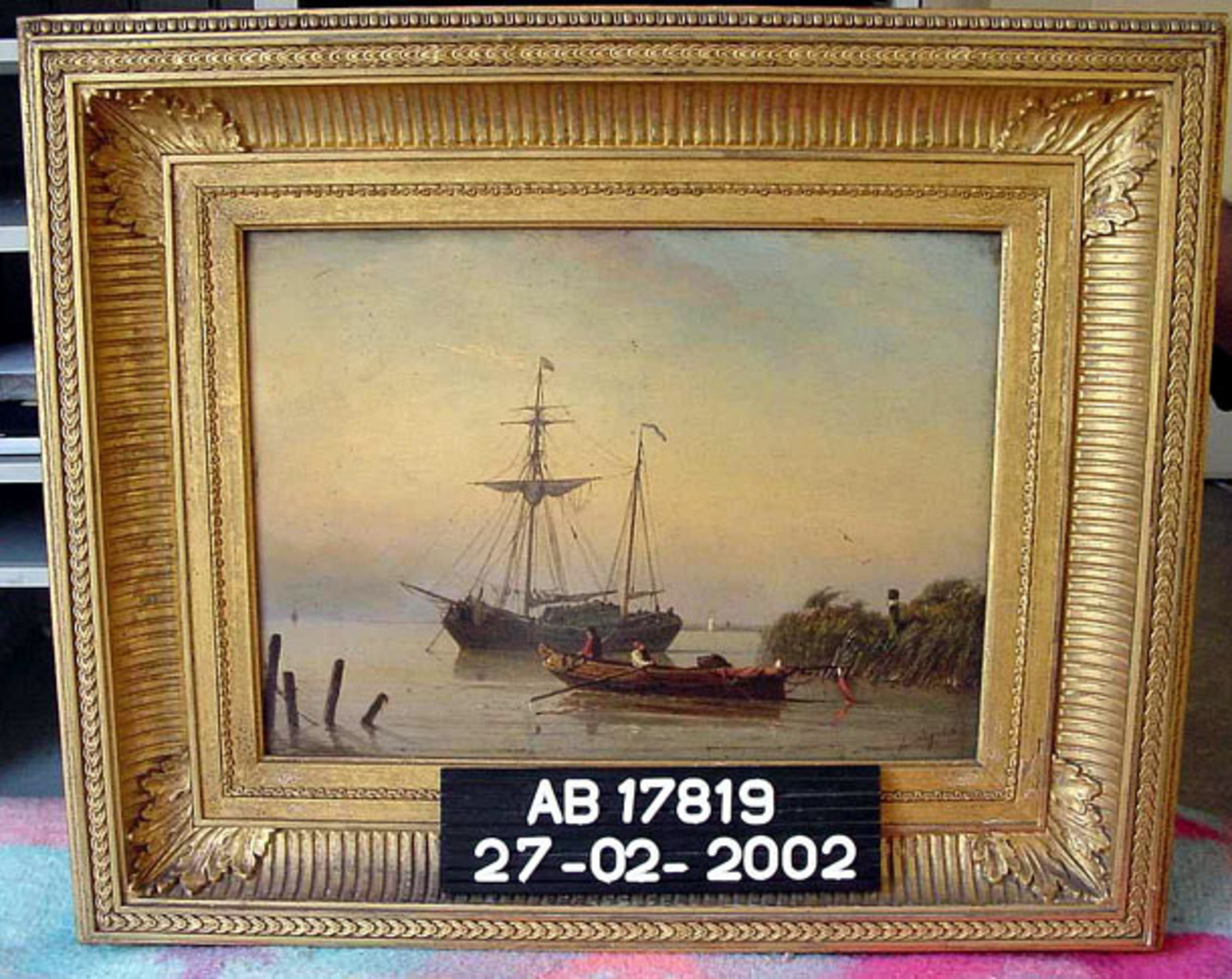 Aangemeerd schip op een kalme rivier