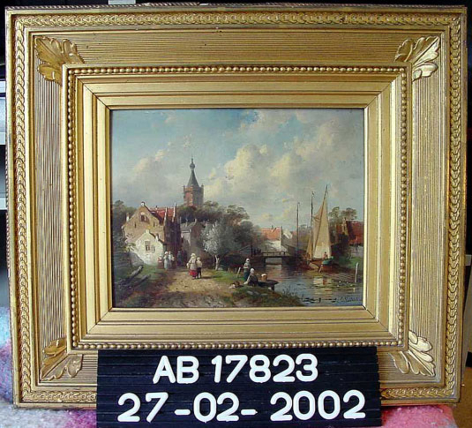 Gezicht op een dorp aan een kanaal