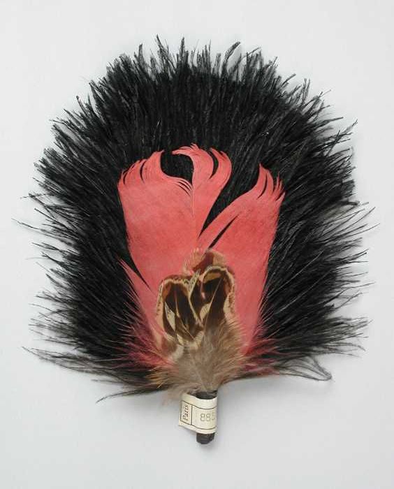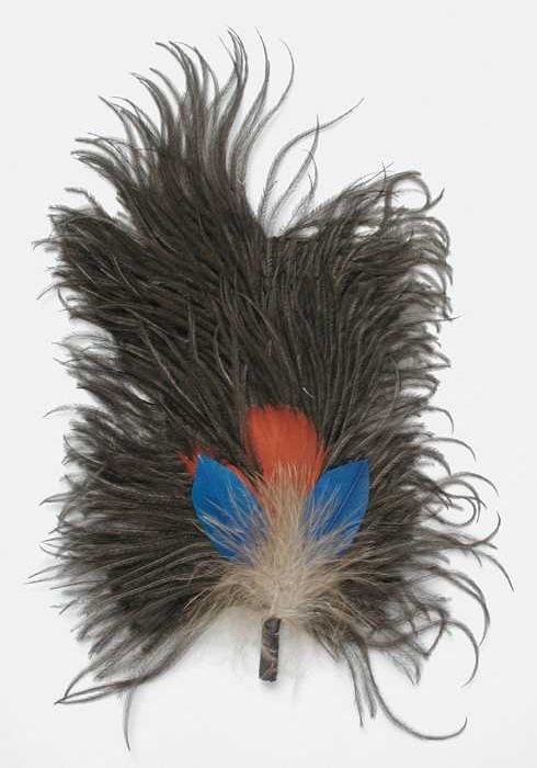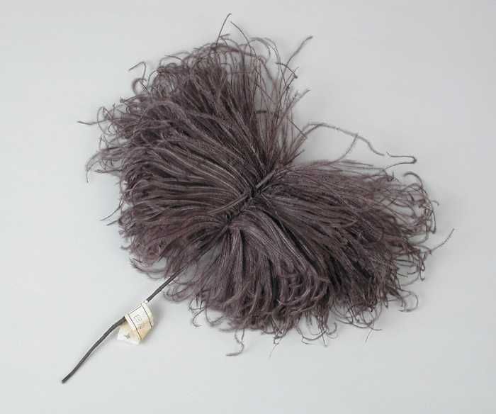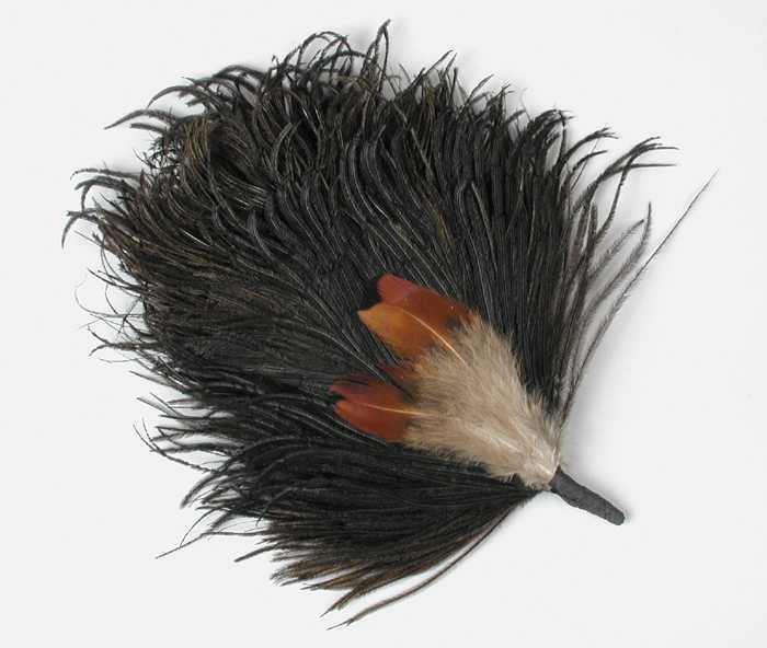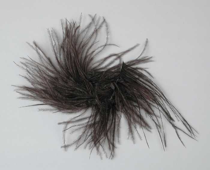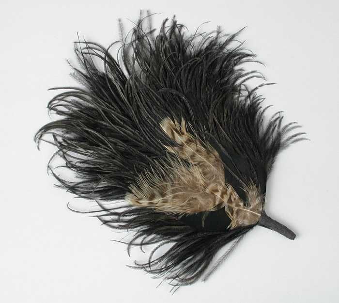 Veren hoedendecoratie of corsage, donkerbruine marab...