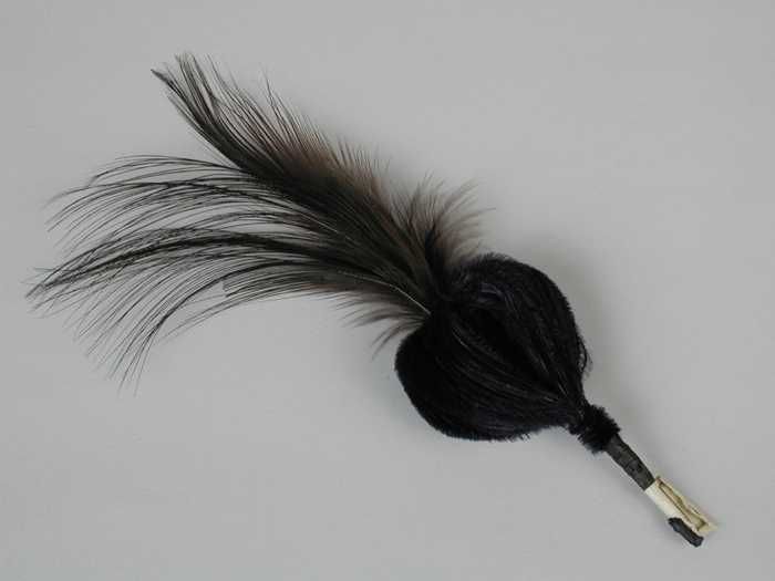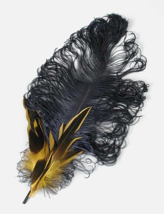 Veren hoedendecoratie of corsage, zwarte veer beplak...
