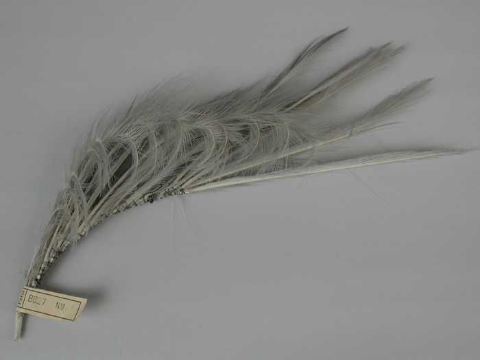 Veren hoedendecoratie of corsage, lichtgrijze veren ...