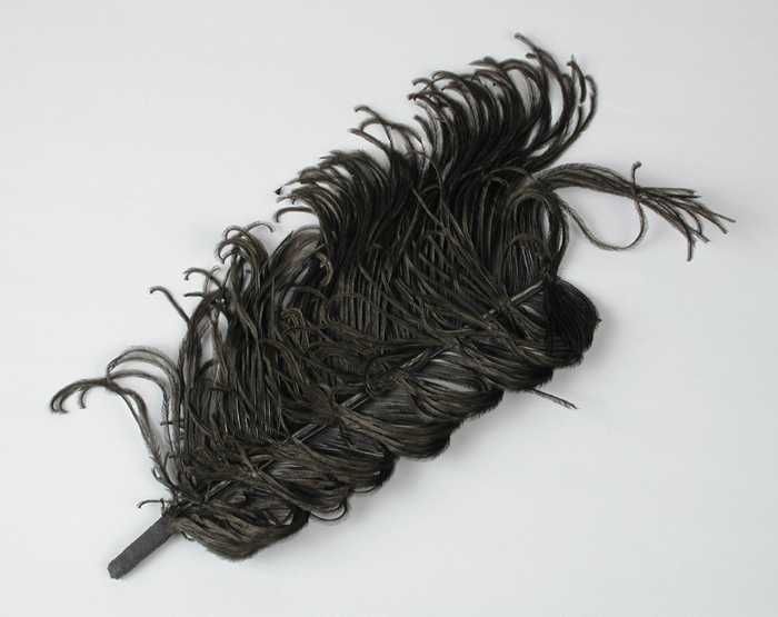 Veren hoedendecoratie of corsage, stukje donkergrijz...