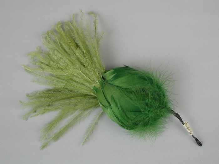 Veren hoedendecoratie of corsage, toefje groene vere...