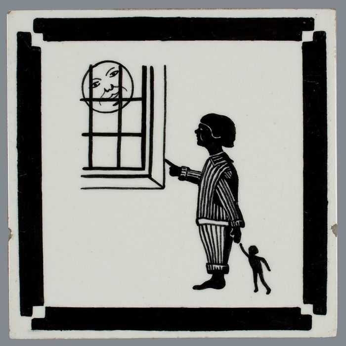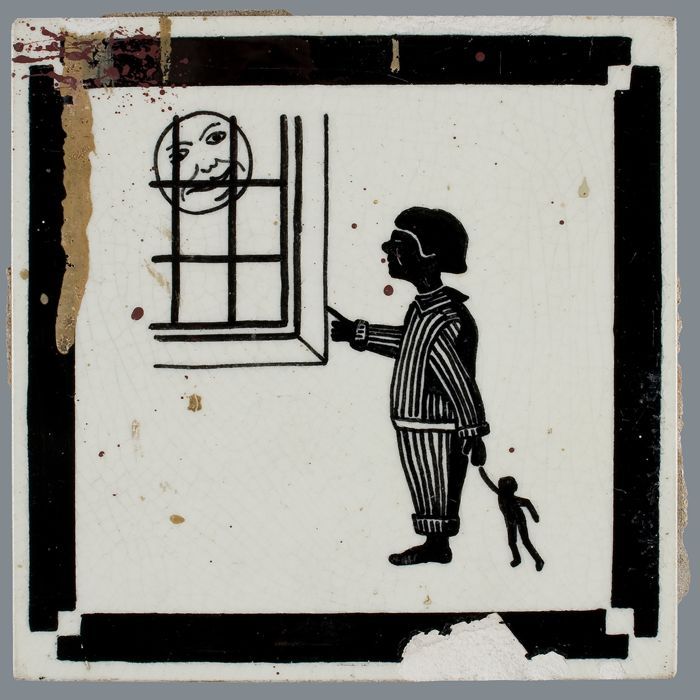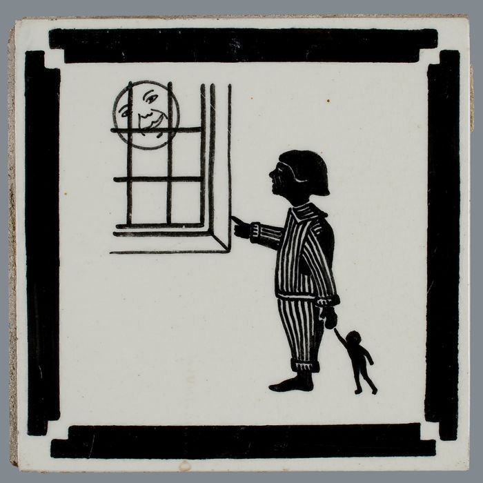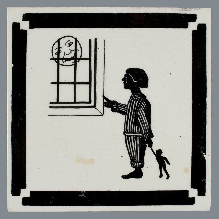 Kindertegel, minitableau van twee tegels, zwart op w...