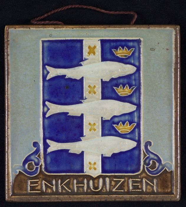 Wapentegel met wapen van Enkhuizen: op blauw wapensc...