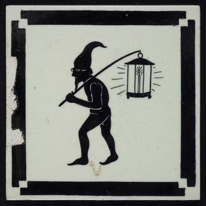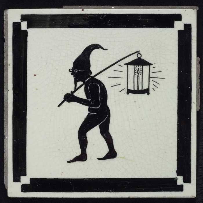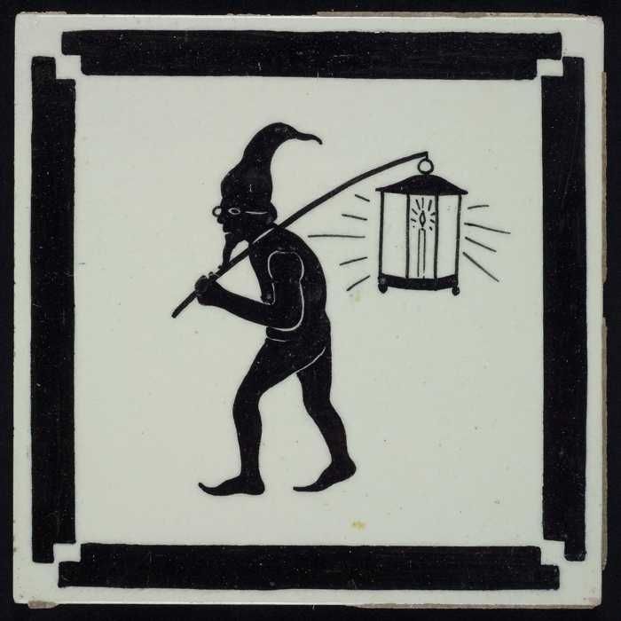 Kindertegel, zwart op wit met een kabouter met een l...