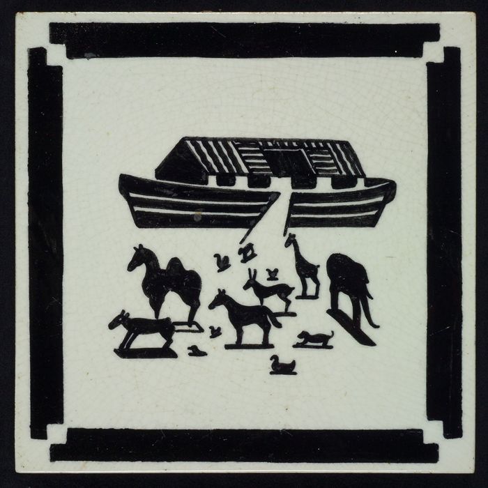 Kindertegel, zwart op wit met speelgoed ark van Noac...