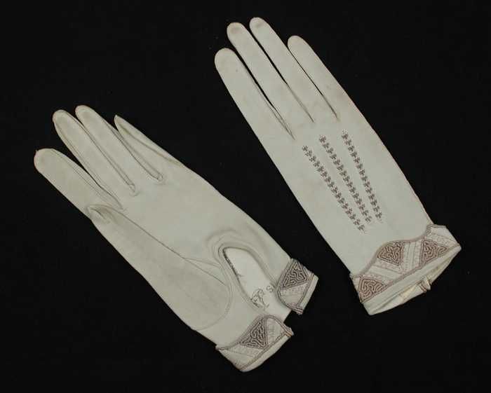 Paar korte dameshandschoenen van lichtgrijs glacé-le...