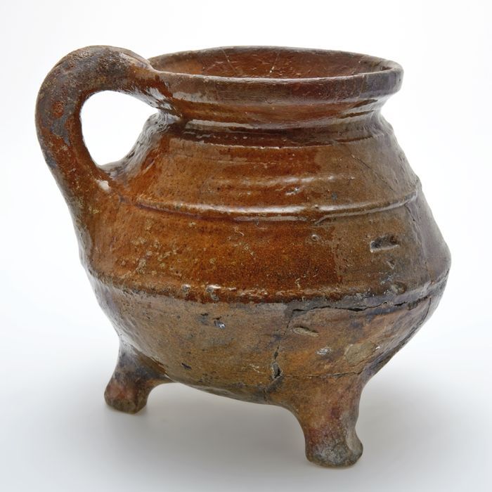 Kleine aardewerk kookkan op drie poten, worstoor en ...