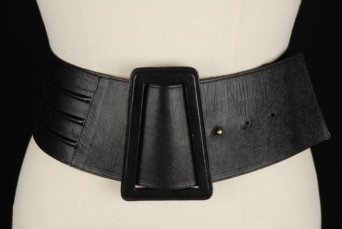 Iets rondlopende brede zwart leren ceintuur met drie...