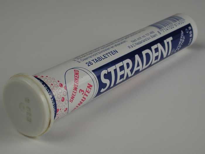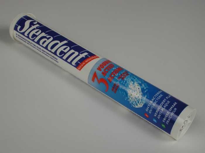 Kleine cilindrische koker voor reinigingstabletten v...