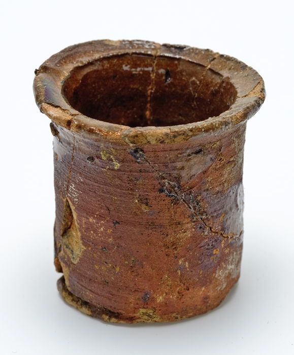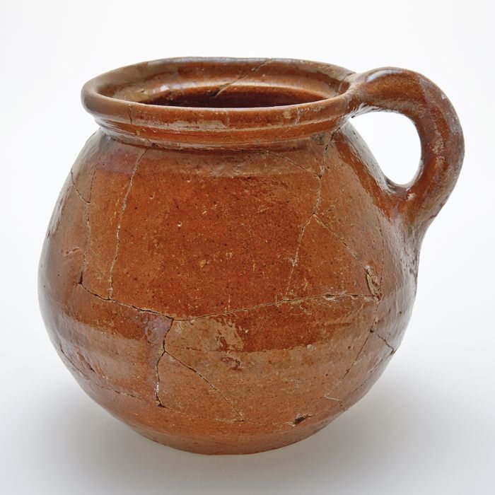 Aardewerk kamergemak met gewelfde bodem, eivormig mo...