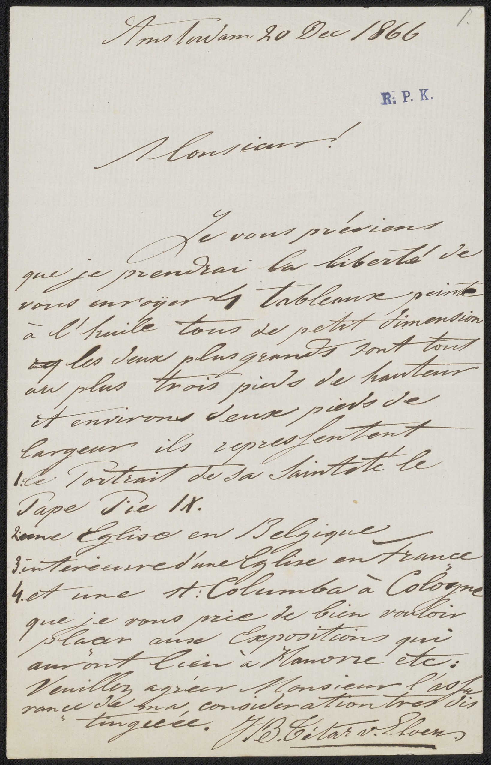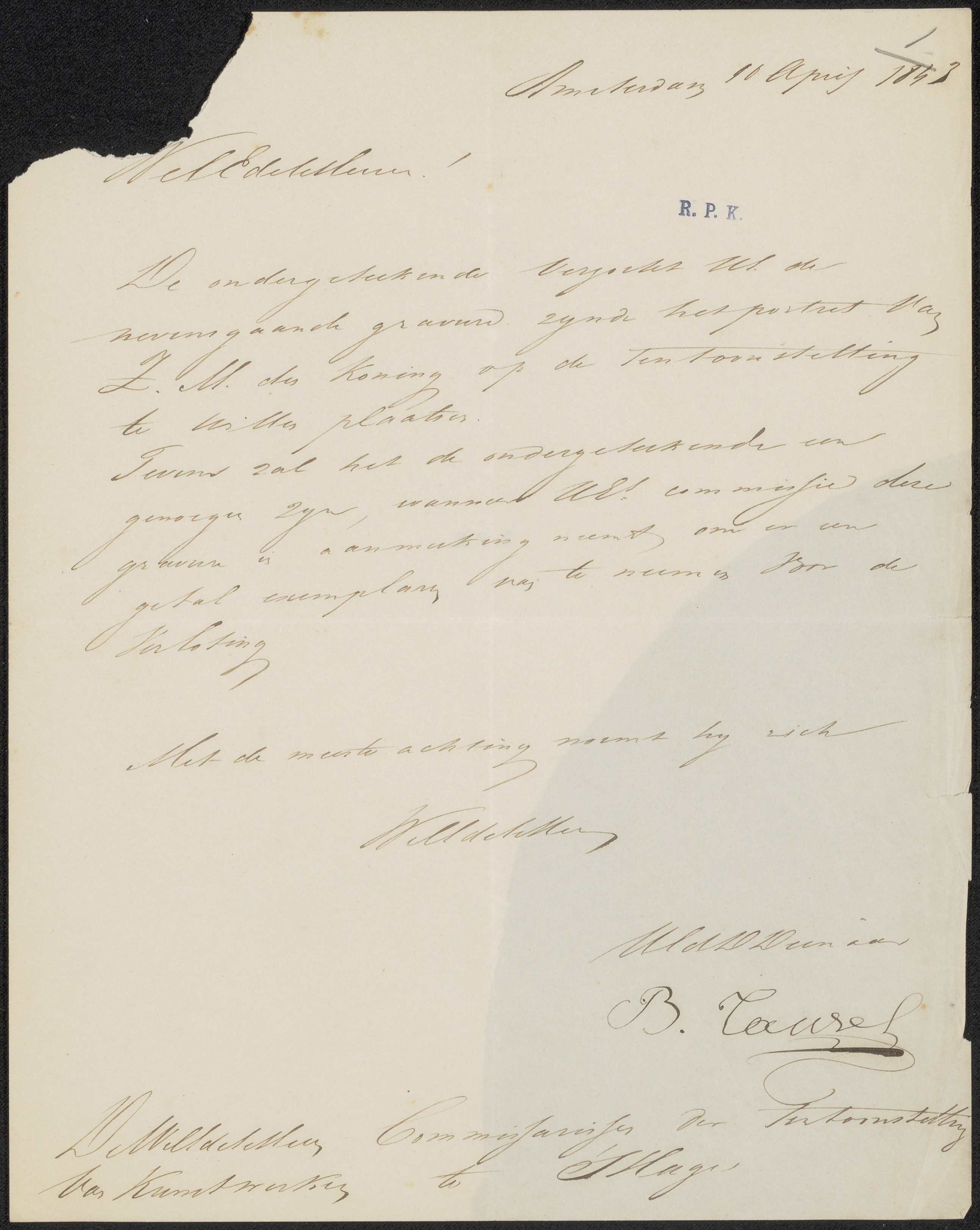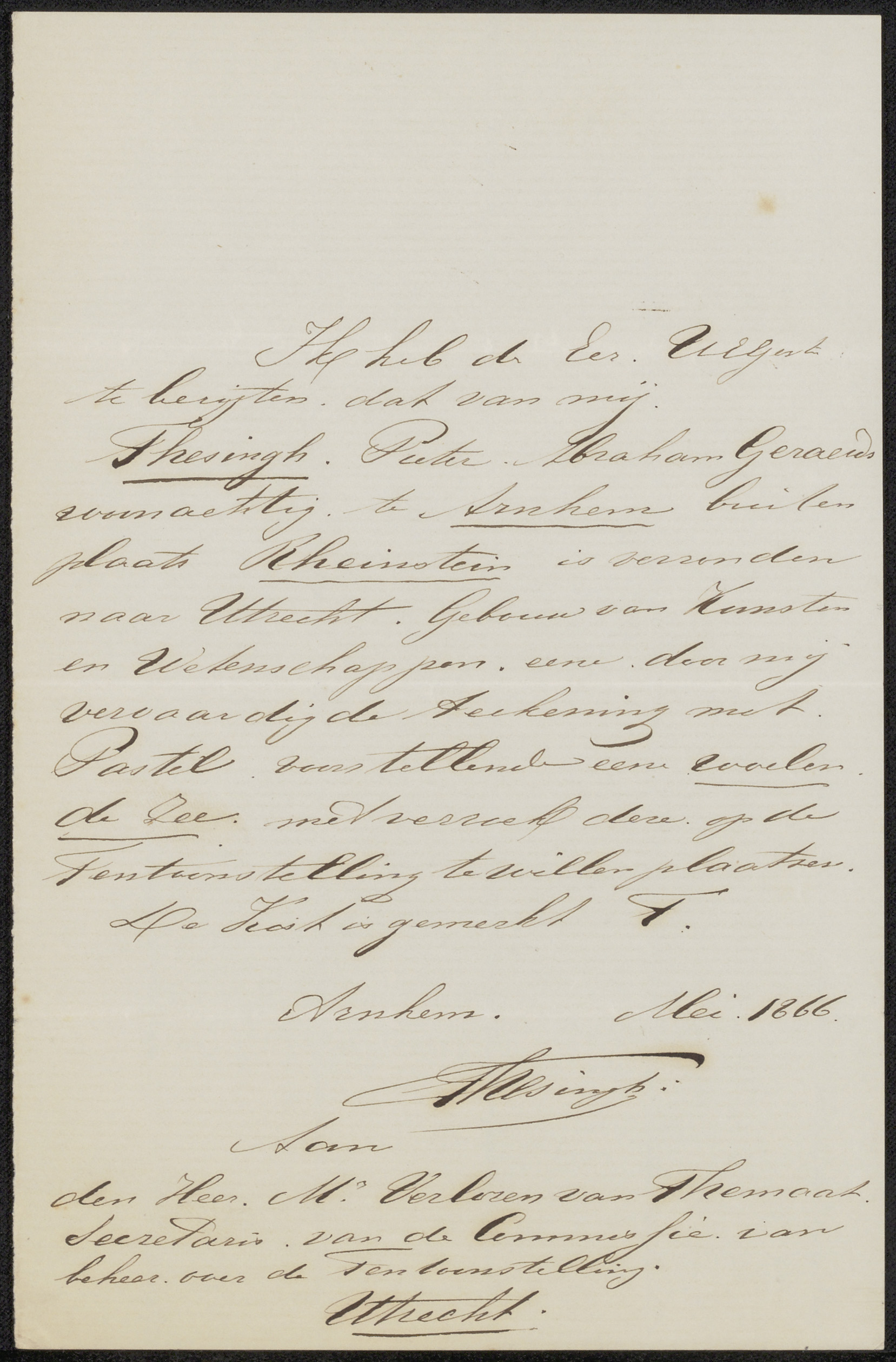 Brief aan de commissie van de Tentoonstelling van Le...