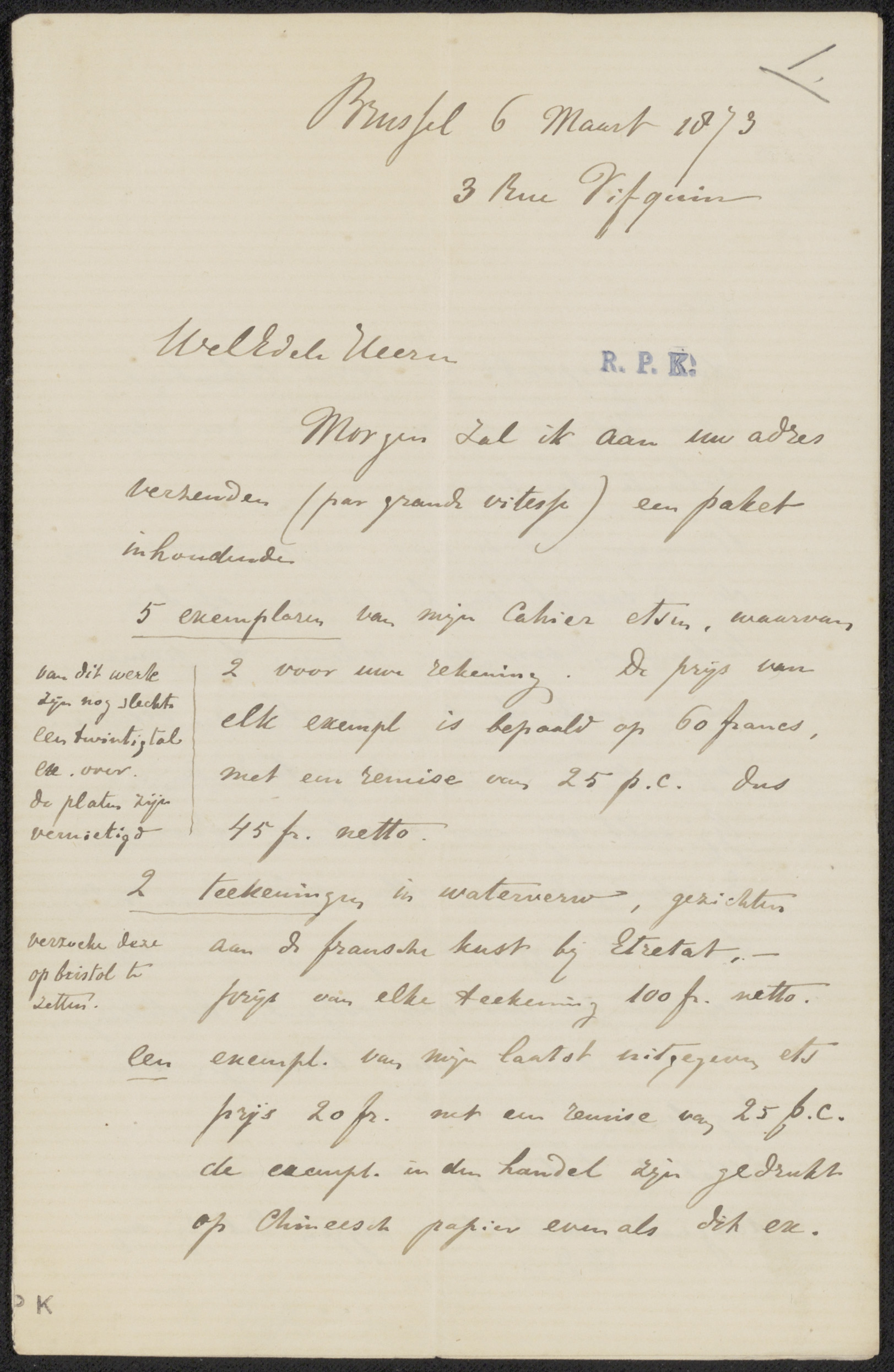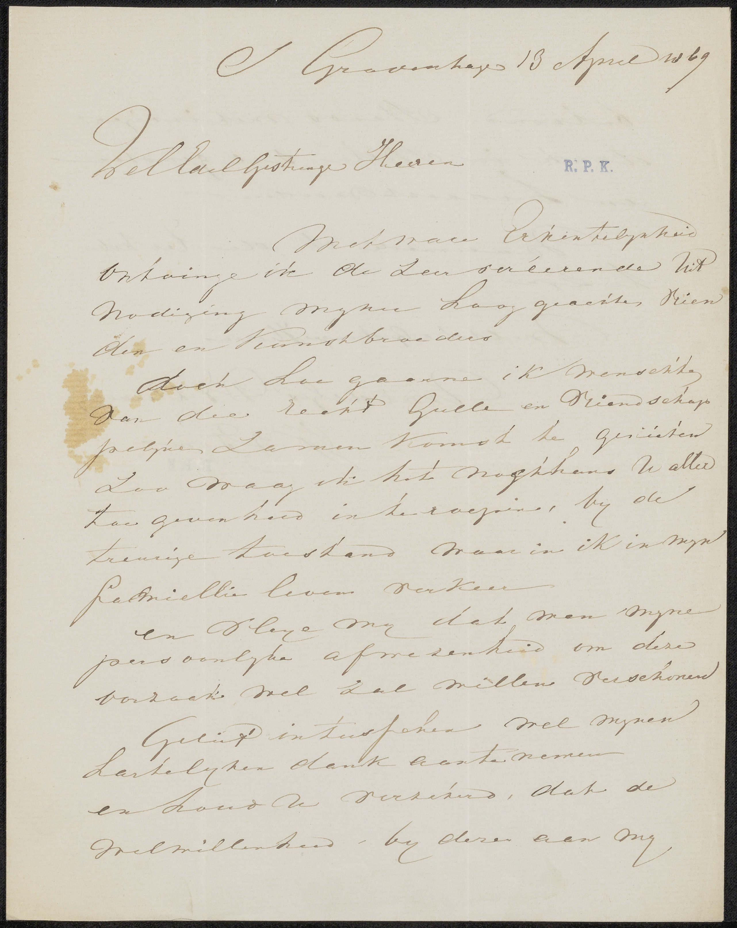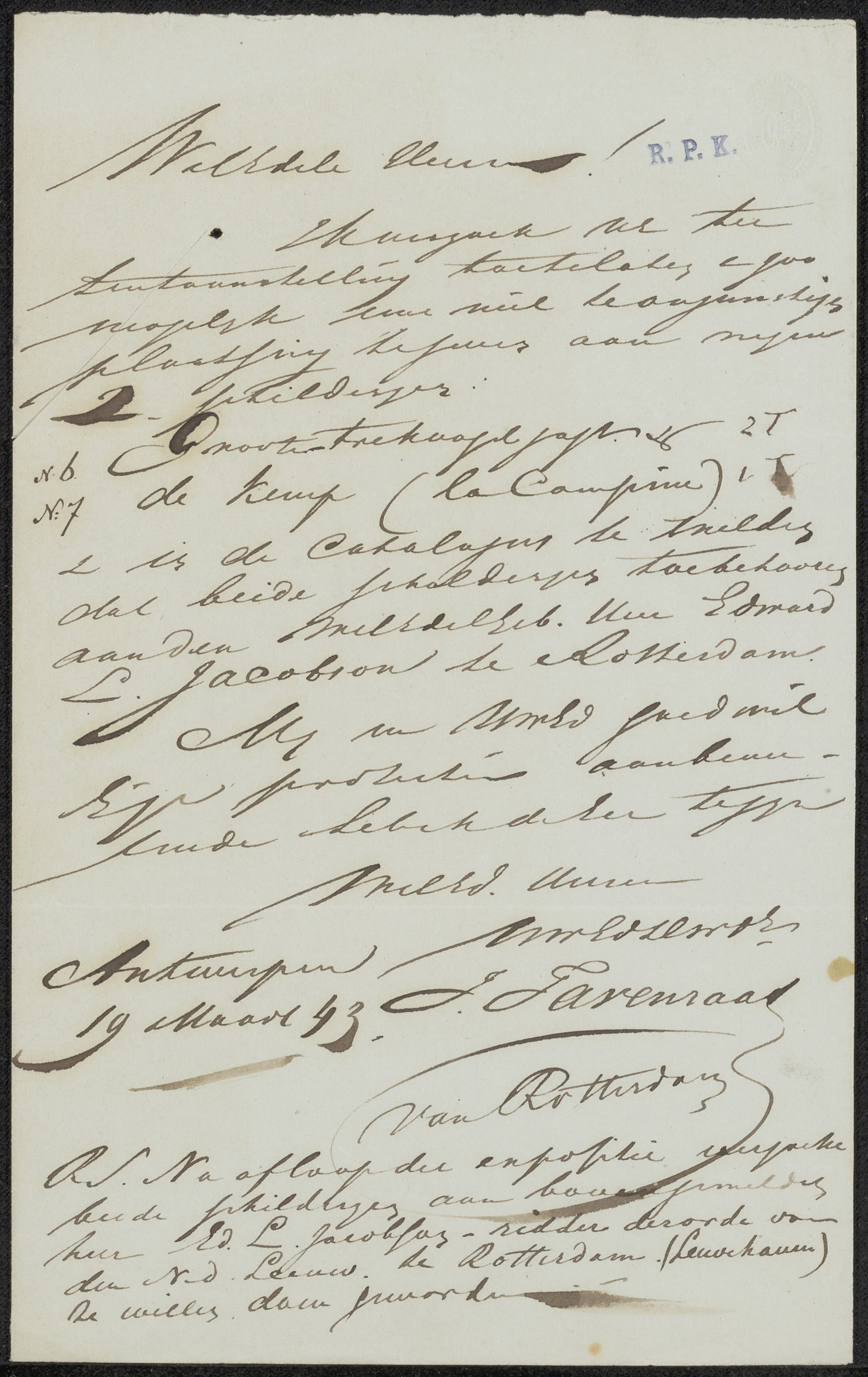 Brief aan Pieter Haverkorn van Rijsewijk