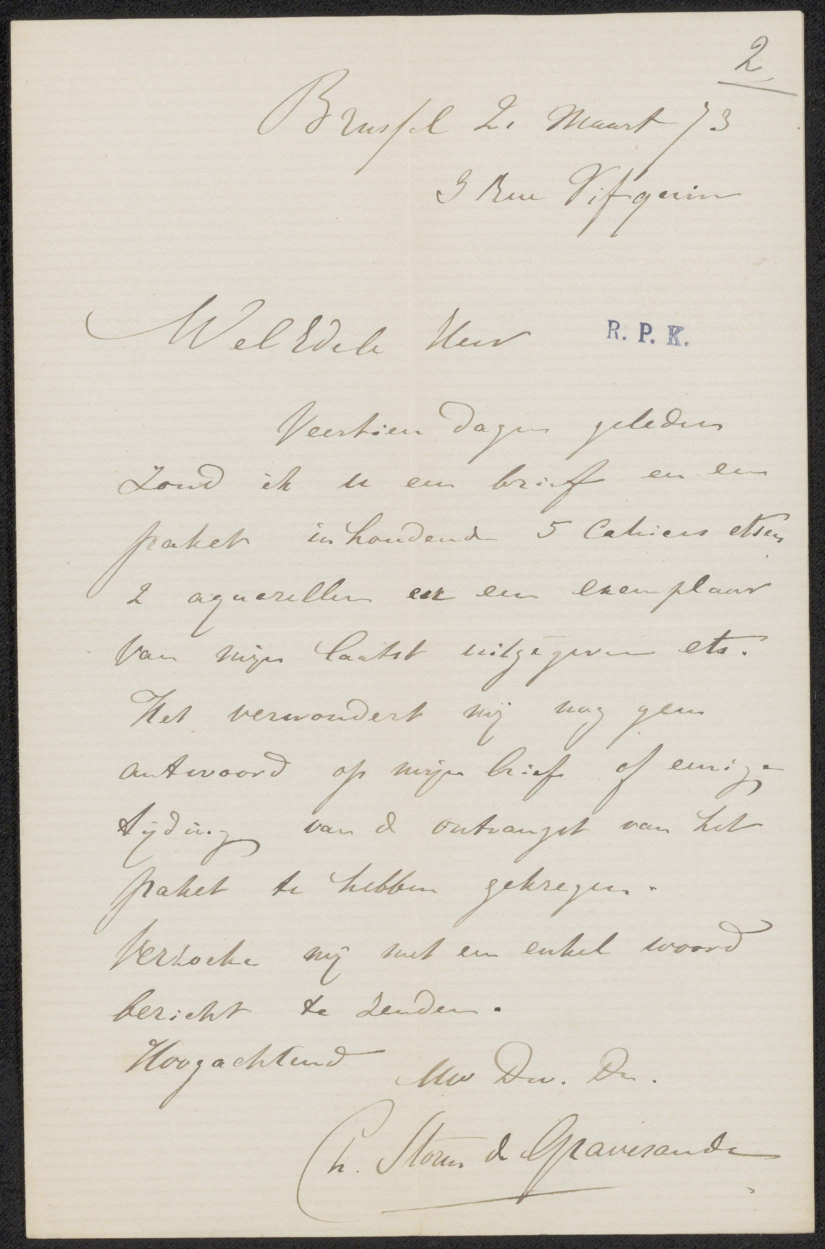 Brief aan Johan Philip van der Kellen