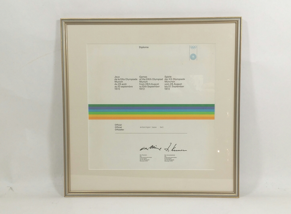 Olympisch deelnamediploma Hans Schnitger chef d'équi...