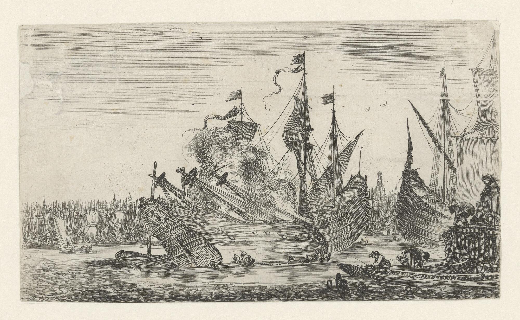 Het kielen van een schip 'Les trois vues d'Amsterdam'
