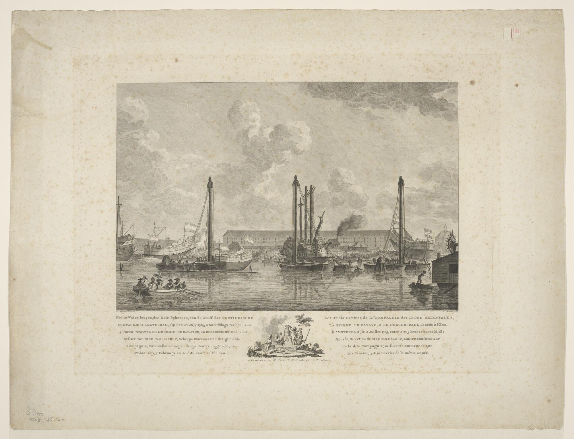 Les trois vues d'Amsterdam: Een schip in aanbouw aan...