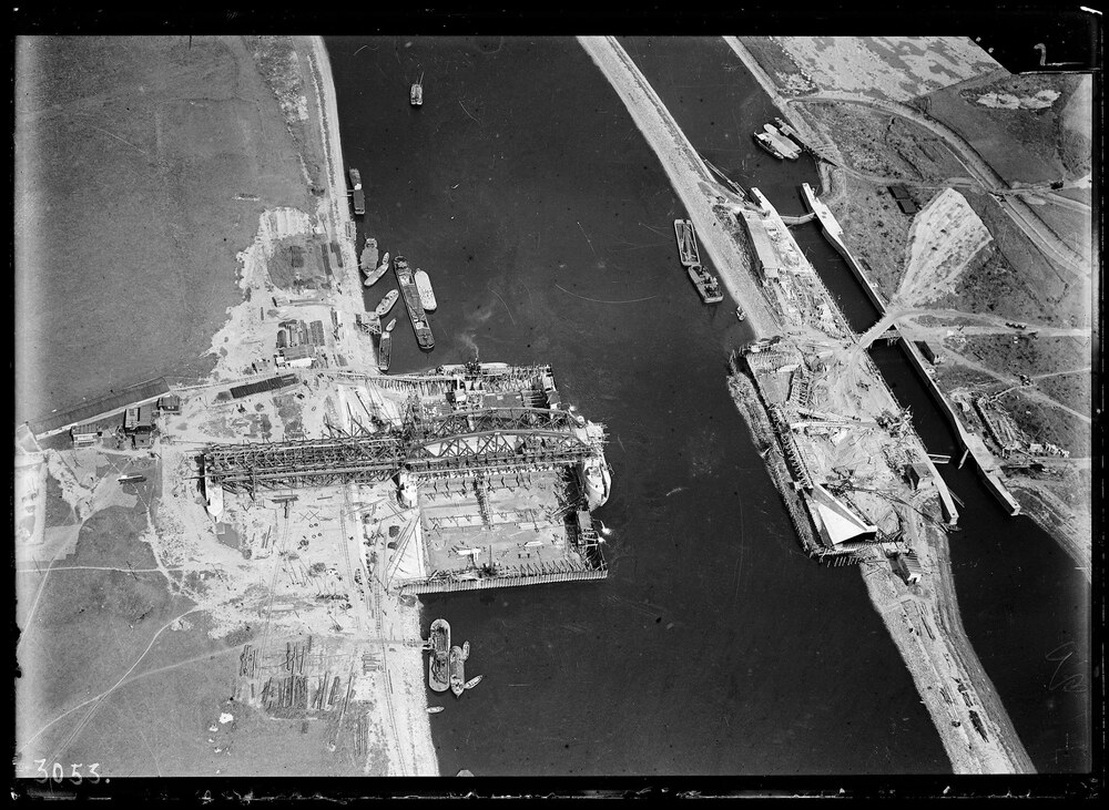 Eerste boog Maasbrug in Nederasselt in wording