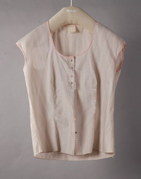 Getailleerde mouwloze blouse, lichtgrijze en lichtro...