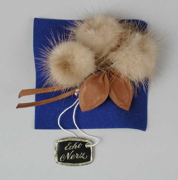 Corsage van lichtbruin nertsbont met bruin leer, ler...