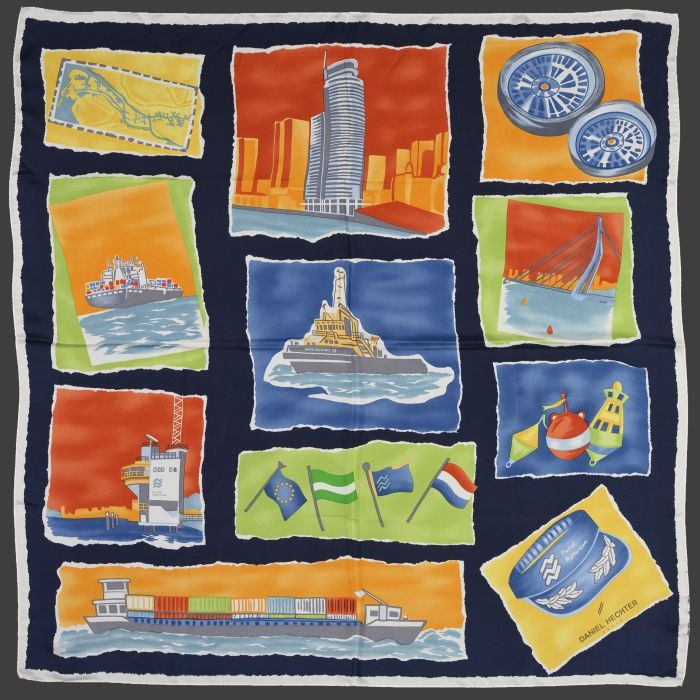 Sjaal van zijde met afbeeldingen over de Rotterdamse...