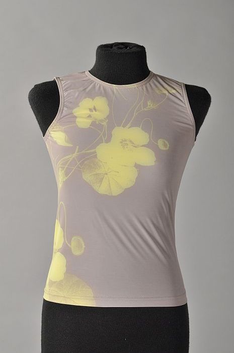 Grijs shirt zonder mouw met opdruk lichtgele bloemen...