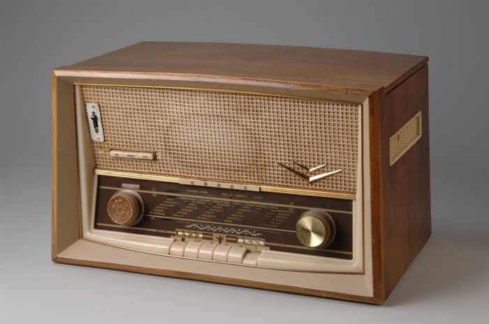Erres radio in kast van houtfineer