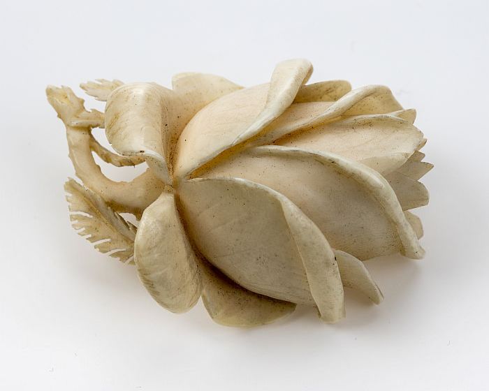 Ivoren broche een roos gesneden uit het ivoor, zeer ...