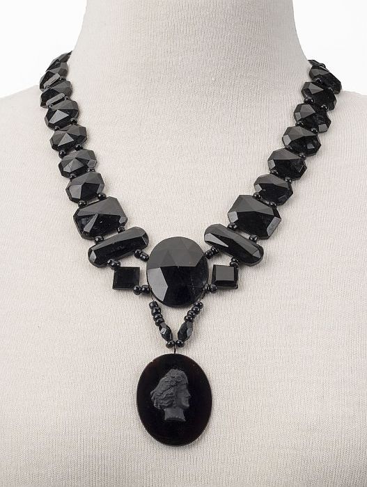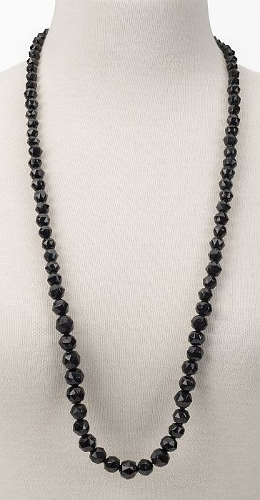 Lang kralenhalssnoer van facetgeslepen zwarte kralen...