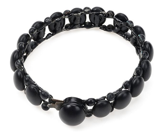 Kralensnoer van zwarte facetgeslepen platte kralen, ...