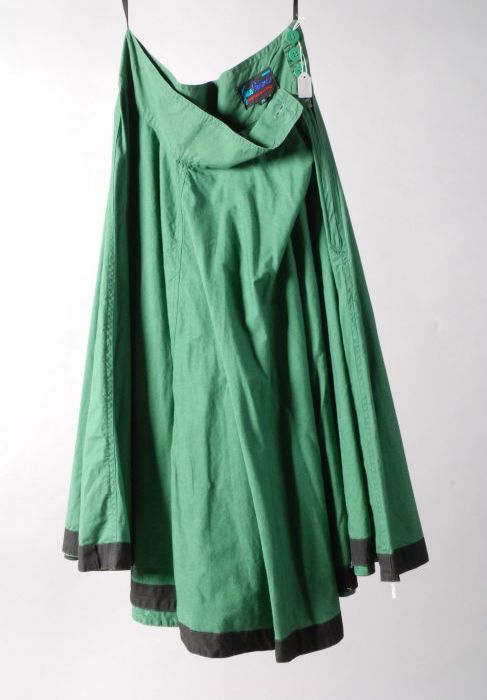 Zeer ruimvallende groene cirkelrok met verbrede tail...