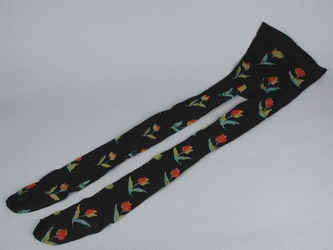 Zwarte panty met ingemaasde tulpen in groen, geel en...