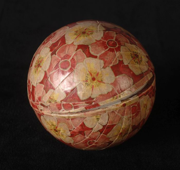 Rood gebloemd bolvormig kartonnen doosje voor broche
