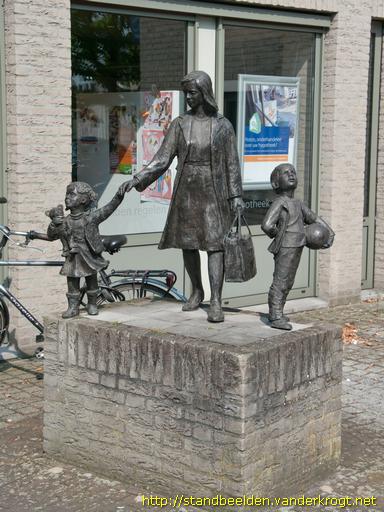 Treurende weduwe met kinderen