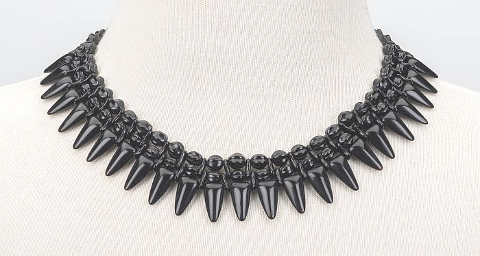 Halsketting van zwarte kralen, buitenste rand van kr...