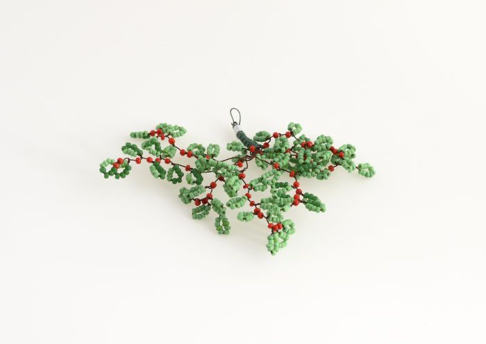 Broche of corsage van rode en groene glazen kraaltje...