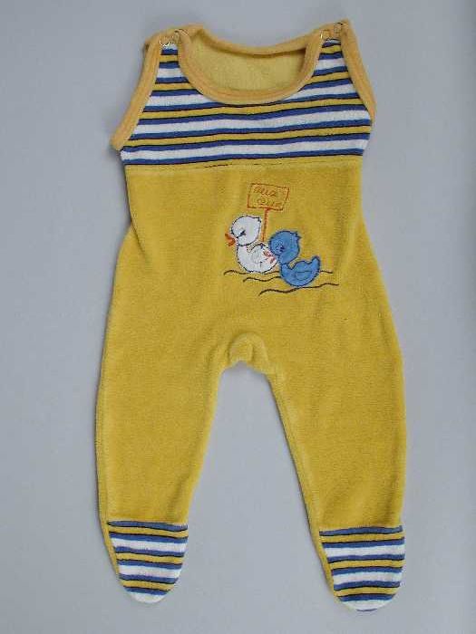 Hansop van gele badstof, deels blauw-geel-wit gestre...