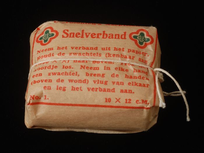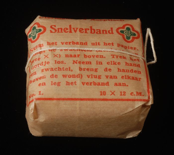Snelverband in wikkel van ongebleekt papier, met geb...