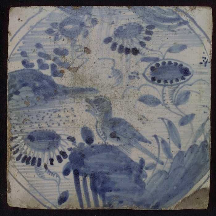 Chinese tegel, water met vogel en bloemen