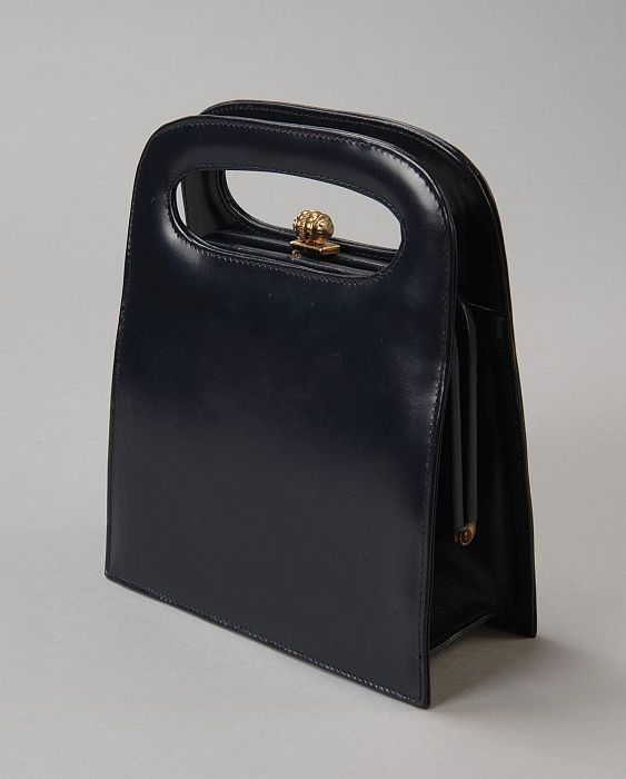 Avondtas, kleine handtas van glad donkerblauw leer m...