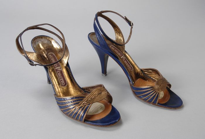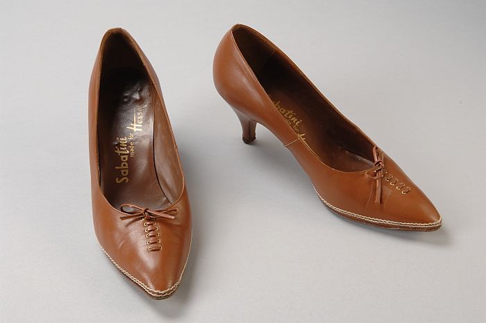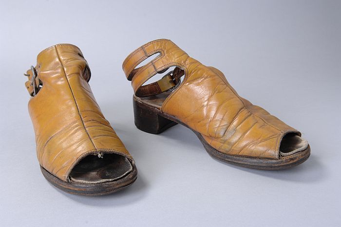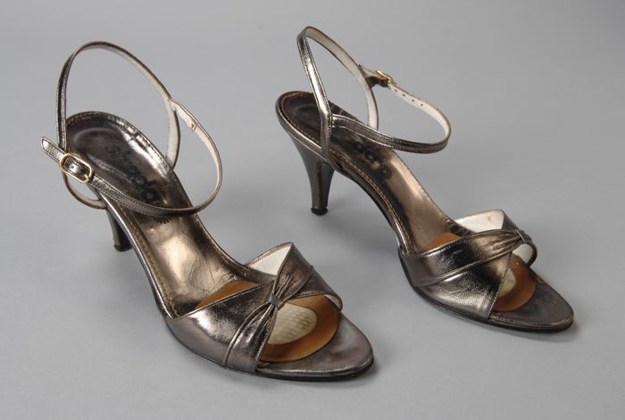 Bronskleurige leren sandalettes met sierstrik op de ...