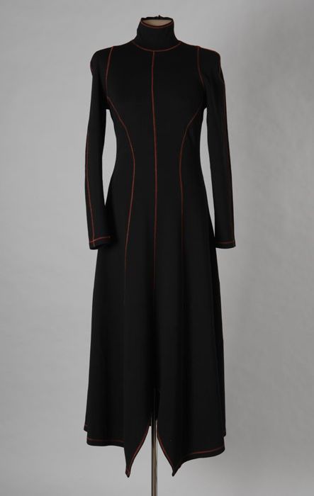 Lange zwarte tricot jurk met lange mouwen en turtlen...